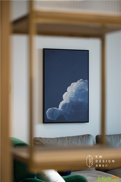 蓝白色同色系挂画简约美观乃女主人的细腻之作。