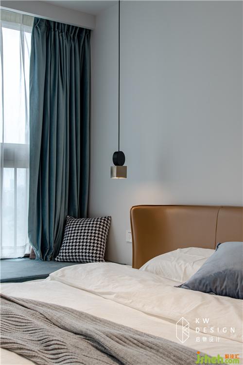 床头简约异形吊灯平衡床头左右两端设计,照明和装饰功能兼备。
