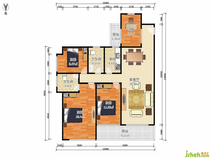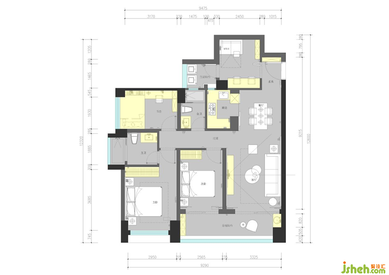 房子在大学城片区,环境舒适,人文气息浓厚,交通方便,户型方正还带大阳台,非常适合居住。家宇和先生只花了三天时间就买下了这套房。四室两厅两卫的房子装修风格偏老气,希望通过最低成本的改造尽可能满足审美享受。 主要诉求:1.改掉房子宛如粤菜馆包房的装饰风格。2.希望每个空间具有较强的功能性,比如书房同时还要兼具储物和客住功能。