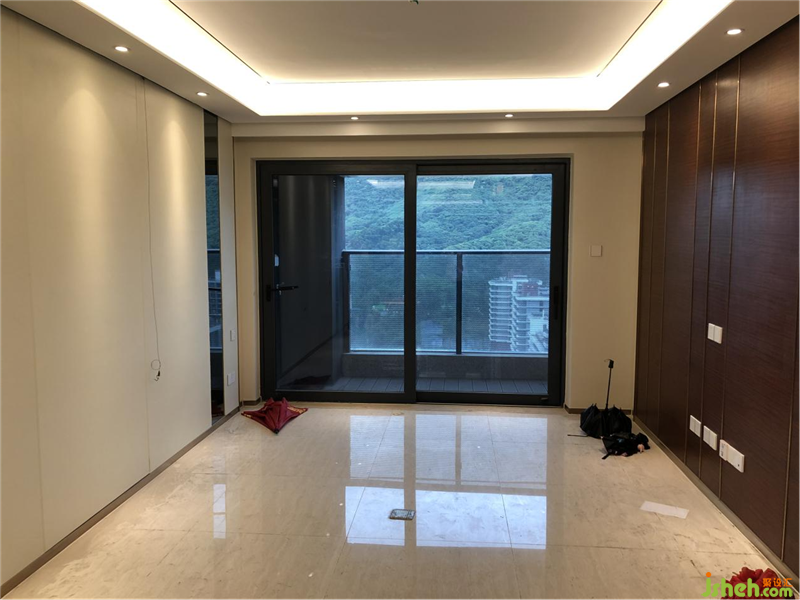 原精装材料简陋,风格陈旧,轻奢风格的吊顶搭配这猪肝红木饰面,难以言喻。