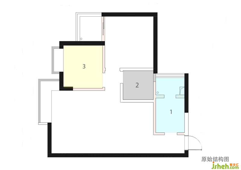 原始户型厨房空间狭小,原本是做的双一字型厨房是比较紧凑,阳台空间用来推积杂物,进门位置过道太窄没有合适位置摆放鞋柜鞋子都堆积在门口非常不美观。室内设计师整体收纳空间是比较零散局促的。