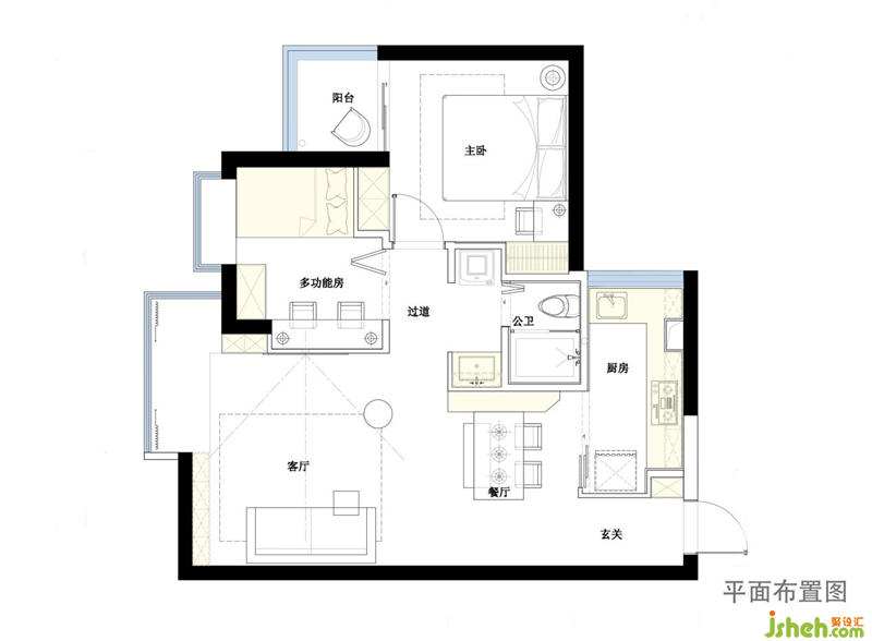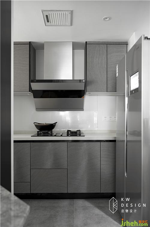 ▶厨房改变进门方向,打通阳台,引进光线打造流畅的L字形厨房动。建超薄墙垛挡住冰箱空隙,三扇联动推拉门开阔与餐厅的连接。借用厨房空间做入墙式鞋柜,鞋子再也不用堆在门口啦。