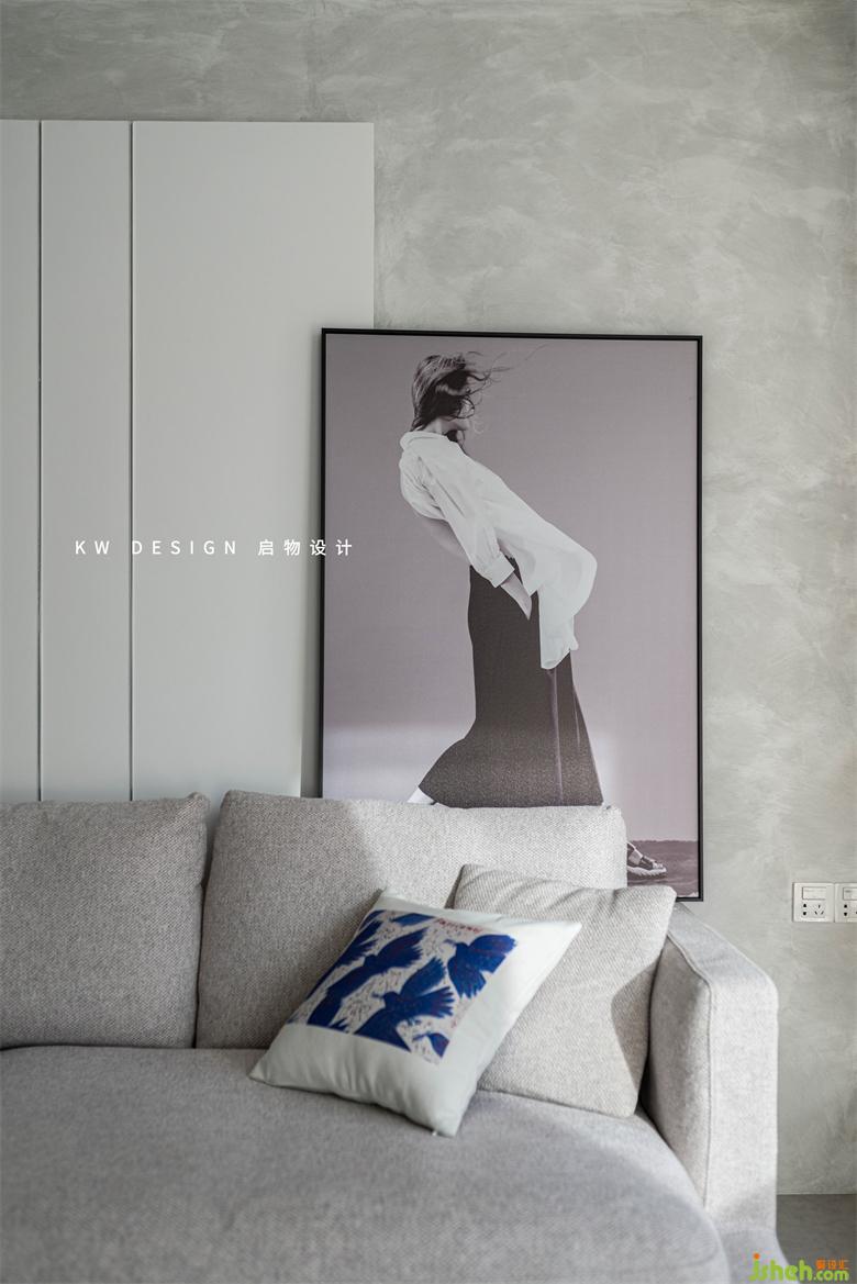 沙发用莫奈彩麻面料,好看不过时。N先生特地挑选的这幅挂画,深圳家装设计为宁静空间点缀动感韵律,中性灰背景也瞬间生动起来。