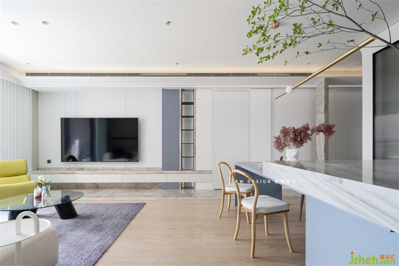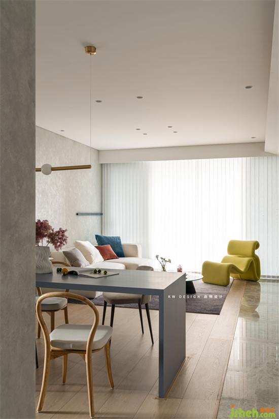出于对小两口的了解,整体硬装走的现代极简。软装会用雾霾蓝,米色,灰绿色等一些低饱和,耐看的颜色局部点缀贯穿全屋。