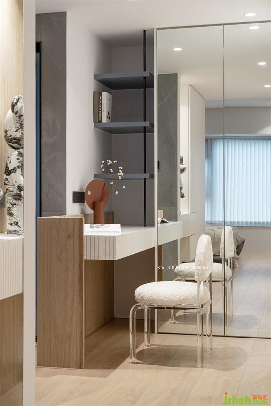 细节处将镜面元素纳入端景,衣柜门等局部,放大空间以外,点亮视觉感受。