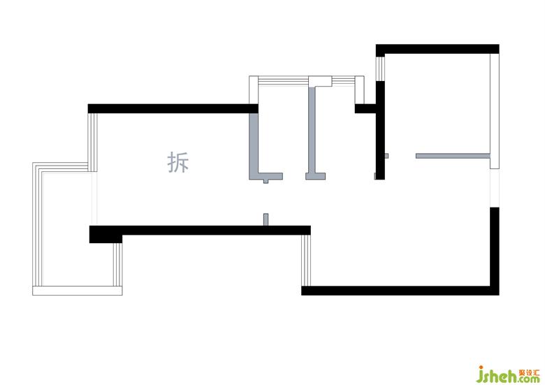 3:厨房墙面往卫生间移,扩大空间,原来的L型厨房可以改成u型厨房,有了切菜区,也有了冰箱安置区。内藏式推拉门不会影响室内动线。