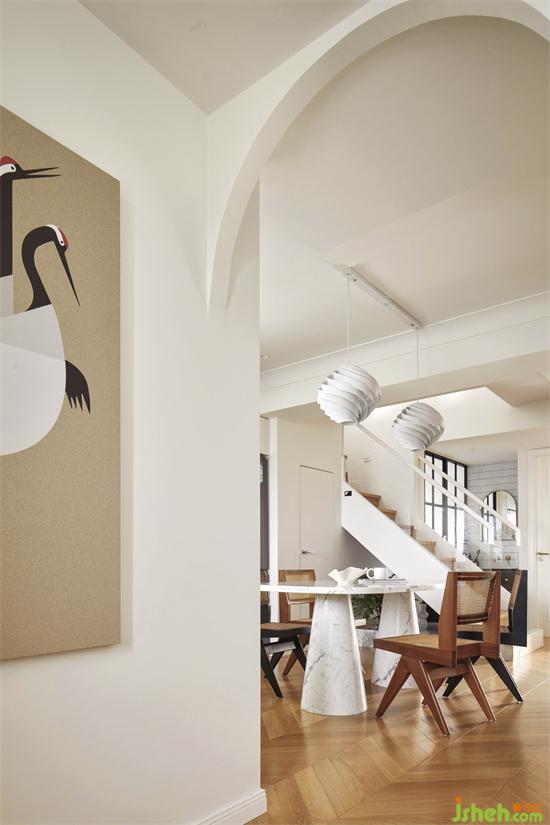 佳兆业悦峰复式装修设计整个用餐空间兼具空气和力量感,羊羊说实现了她对国外轻法餐厅的一点点念想。