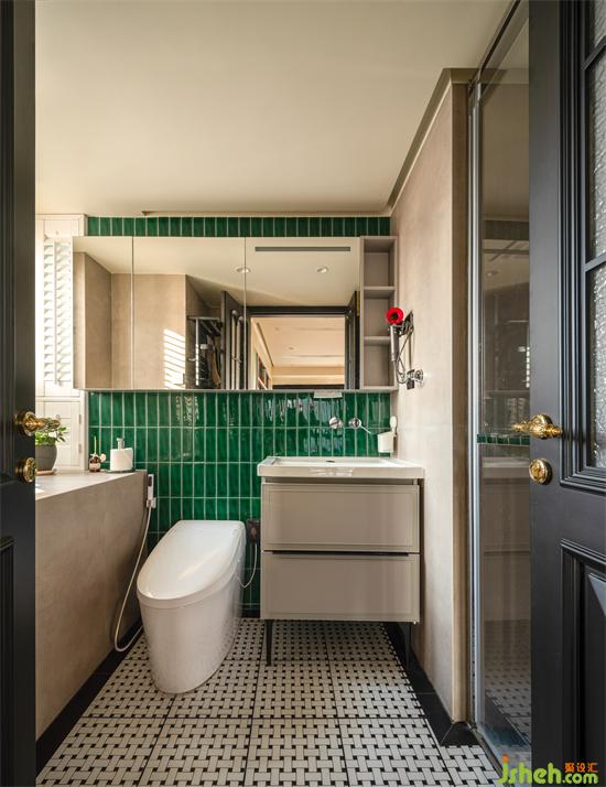 花砖是南洋风的灵魂,公卫和主卫墙面分别采用了不同颜色的冰裂纹花砖,海纳公馆家装设计浮雕质感与跳脱的颜色为浴室空间注入无限生机活力。
