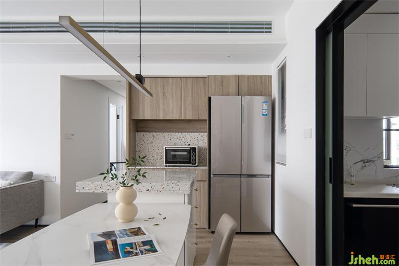 岛台作为用餐功能时与餐桌整体跨度两米多,可以满足多样化的用餐形式以及更多人员的配置需求。