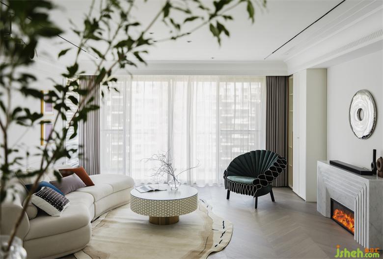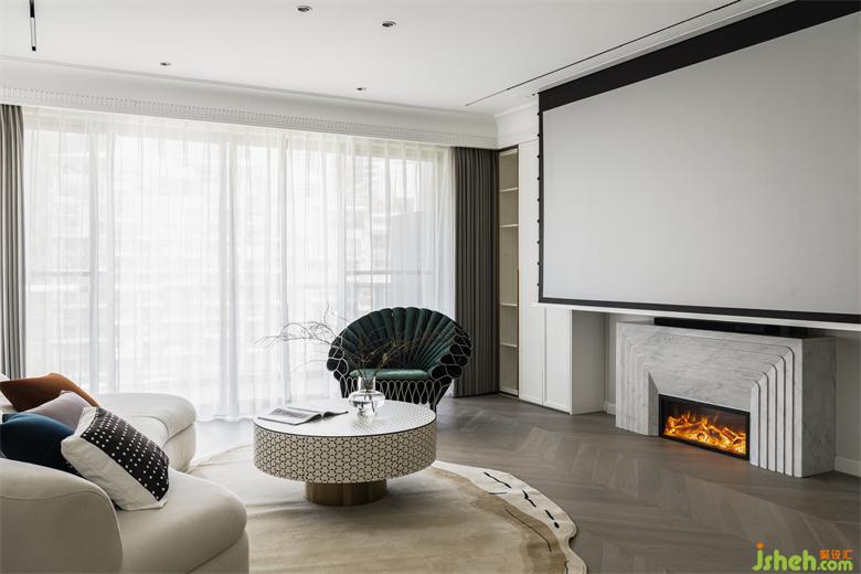 南山兰溪谷家装设计以现代手法传承传统法式情调,大理石立体造型镶嵌电子壁炉,搭配ZIERTI的不锈钢装饰镜,打造别具一格的休闲背景。