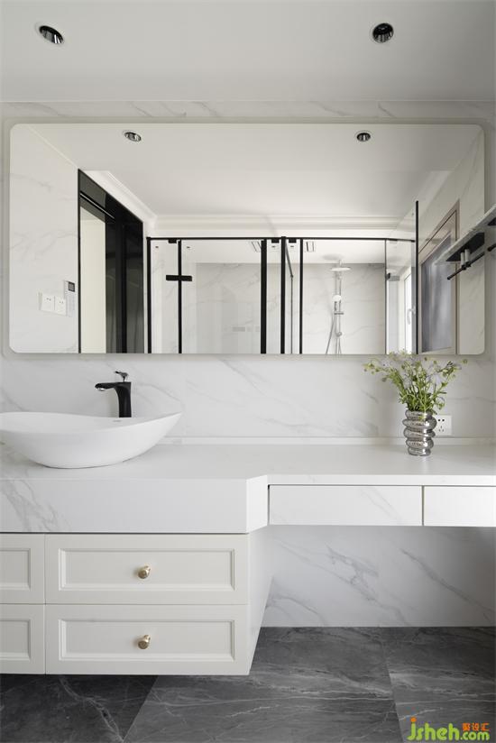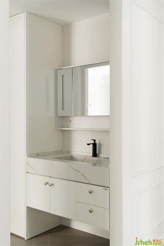 把洗漱和装扮动线整合,南山兰溪谷家装设计梳妆区域设置在卫生间,与洗手台相连。