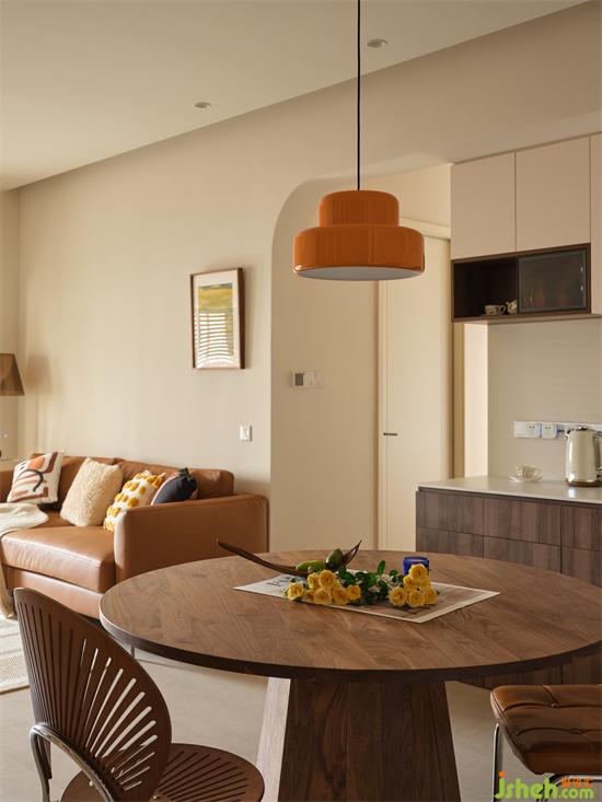 奶油中古的搭配类似咖啡与牛奶的融合,瀚海东岸家装设计充满温度和故事感,结合绿植点缀或饰品跳色,氛围满满。