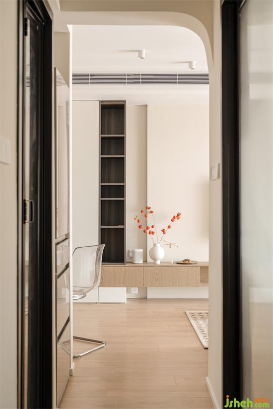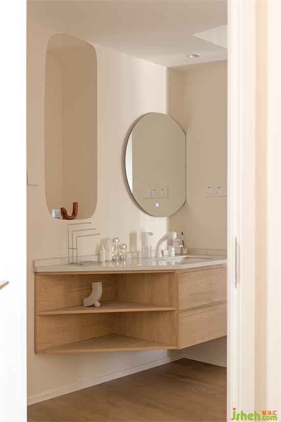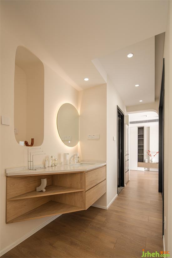 弧线的协调给人能带来一种独特的、百看不腻的永恒美感。家装设计搭配圆形镜面的拱形壁龛增加空间造型感的同时也消弭异型切角的冗余。