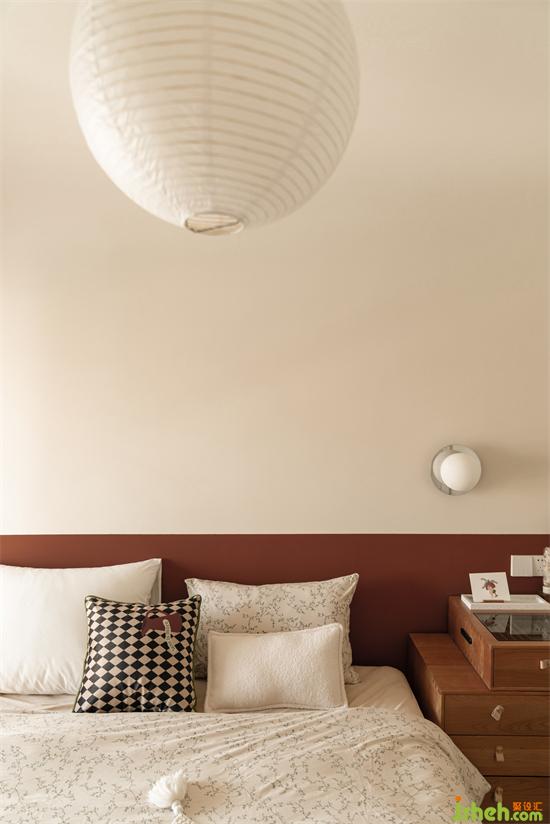 床头壁灯和吊灯是相同的形态,形式上却是极简金属与和风纸两种不同感受的材质对比。家装设计多样和统一的元素融合成就丰富和谐的空间语汇。