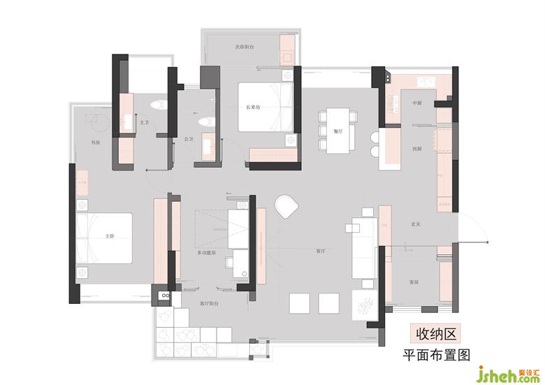 1. 为了打造居住者期望的多变式开放空间,保留两个固定的卧室空间给到主人和长辈,剩余两室两厅结合中西式厨房布局呈现丰富多样的生活休闲场景。