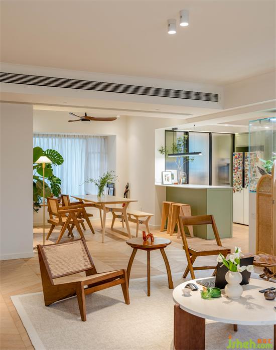 客餐厅一体的开阖布局让空间有了互动的连结。家装设计光影肌理的晕染和层层递进为灵活的空间里重叠出一种新的秩序。