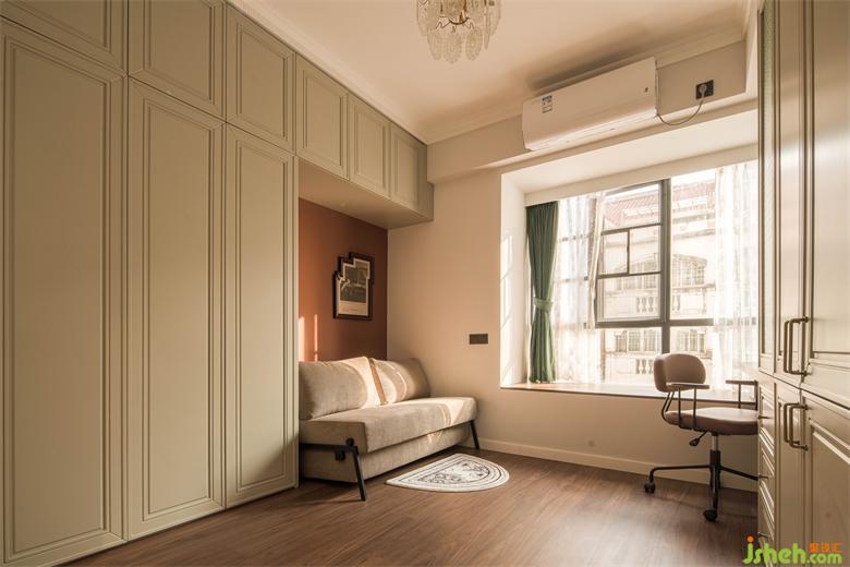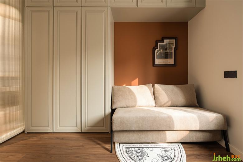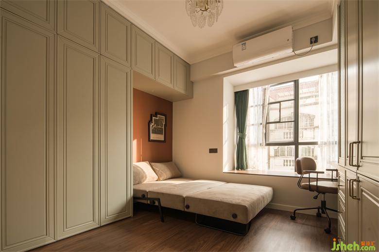 关上多功能房的推拉门,1.5m的沙发床打开就是一个独立的卧房空间,可供友人和父母暂住。