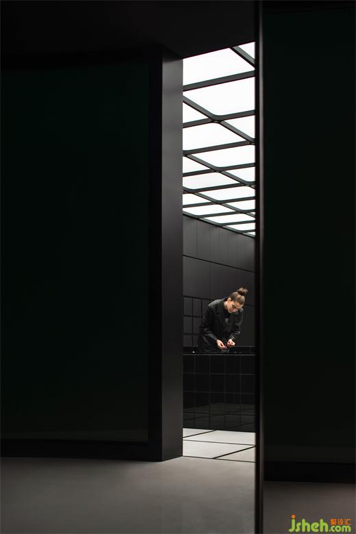 KVK产品概念中存在很多关于“冲突”、“意识觉醒”、“侵略性”、“尖锐”的元素。因此,空间概念店设计中选择了明暗、深浅、质感不一的材质、配色,通过镜面的延伸,来表达品牌内核中“冲撞”的意识形态和美感。