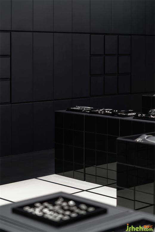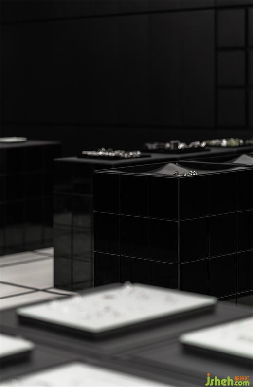 中心展柜通过数组可灵活移动、拼接的模块矩阵组成,概念店设计并辅以不同曲面展台设计加以呈现。