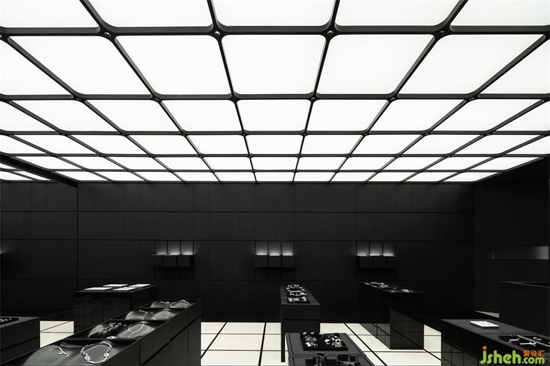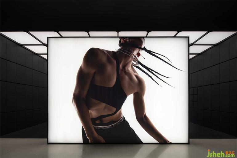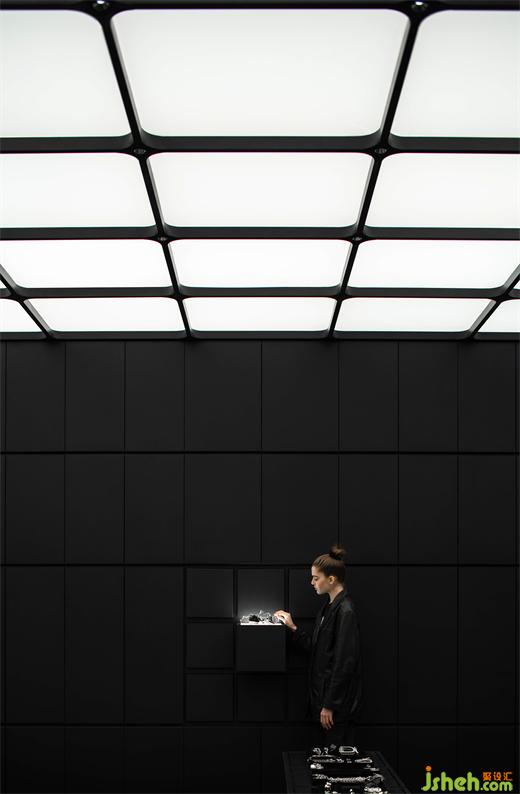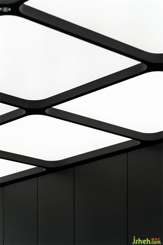 纯黑内壁伫立两侧,概念店设计以3x3自由拉伸式发光模块为群组,兼具产品展示和局部照明的作用。当“抽屉”拉出,灯光随即亮起,在满足展示功能的同时,通过阵列排布的方式增强趣味性,为空间主体提供别样展台。