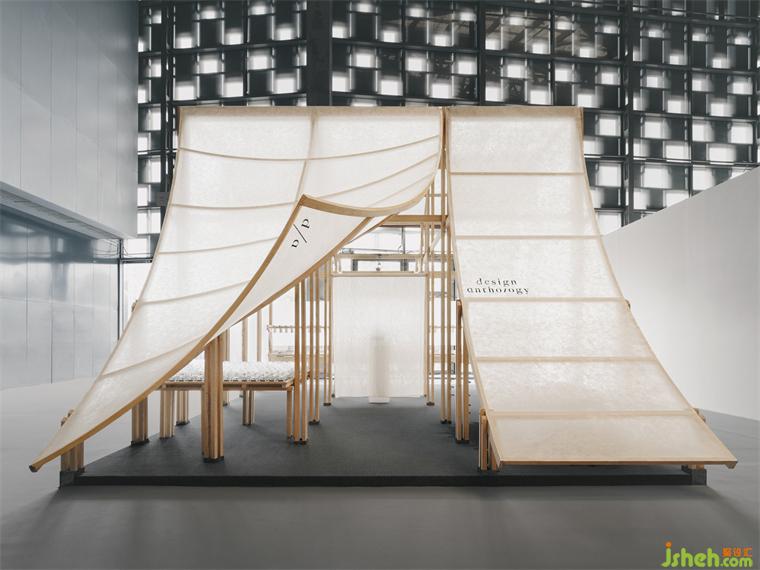 One of the inspirations comes from the character "垚," which is derived from traditional architectural structures and resembles three layers of soil, similar to the structure of a dougong,which represents the beam and column structure in Chinese architecture. Another inspiration comes from the character "兀," which is derived from the shape of ancient building eaves and represents the shape of a roof. The character "羽," derived from the sound of "yao" in ancient texts, represents the long feathers of a bird and its light and graceful posture, which is echoed in the material used for the project. Finally, the character's shape is derived from its meaning of being raised high,its essence has transcended the original definition that recorded in ancient books, reaching for something beyond and creating a sense of resonance and aspiration.