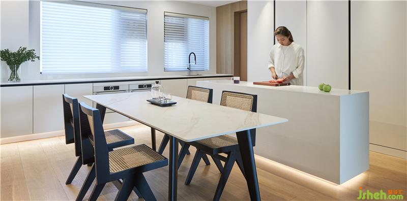 柔和的灯光与纯净的白,还有温润的木质,每一处都深藏着迷人的细节,有种耐得住时光打磨的魅力。