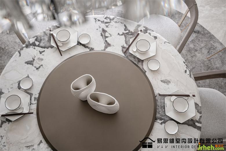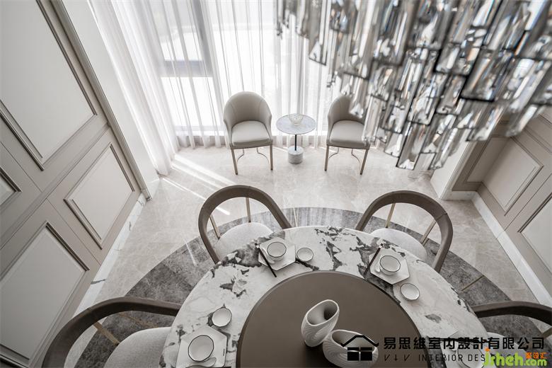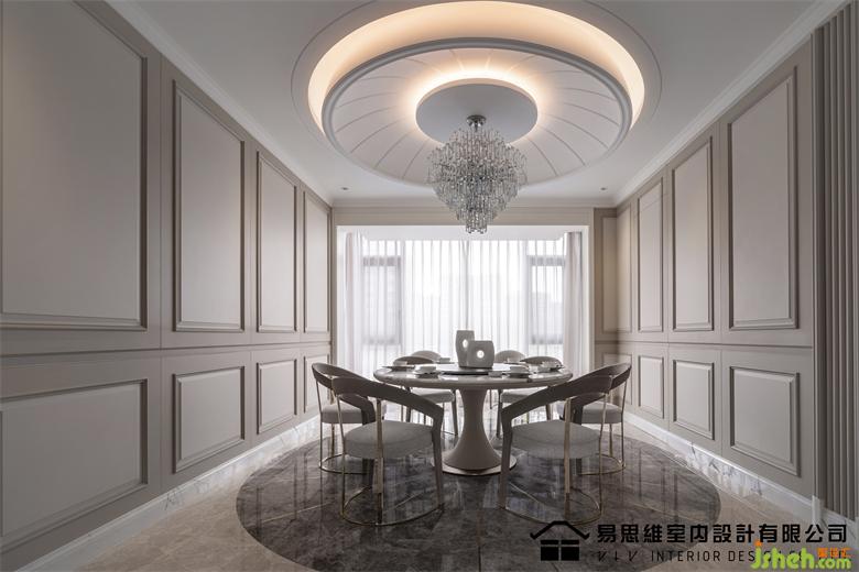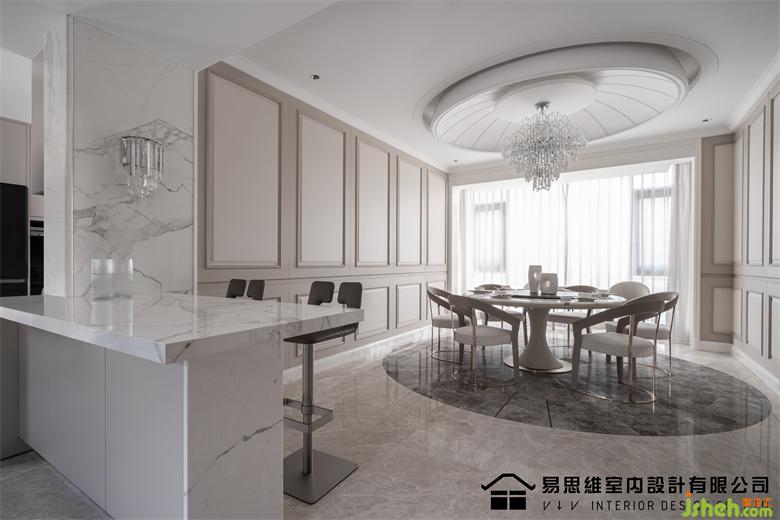 在经典的造型与现代舒适感之间找到其节奏。别墅设计材质轻微细腻的变化给空间带来活力与艺术的展现,低调有机的完美结合。穹顶天花与地面拼花形成时空的围合,包裹着聚餐的欢愉时光,成为物理、感官、情绪相互相融的容器。