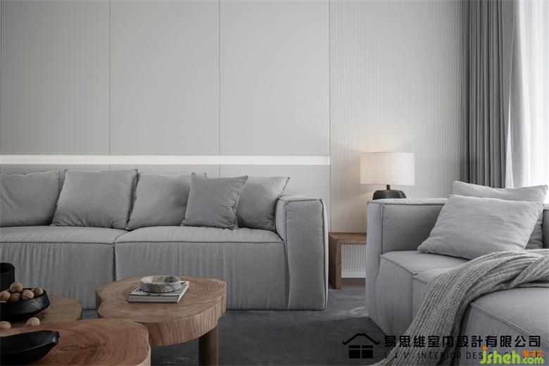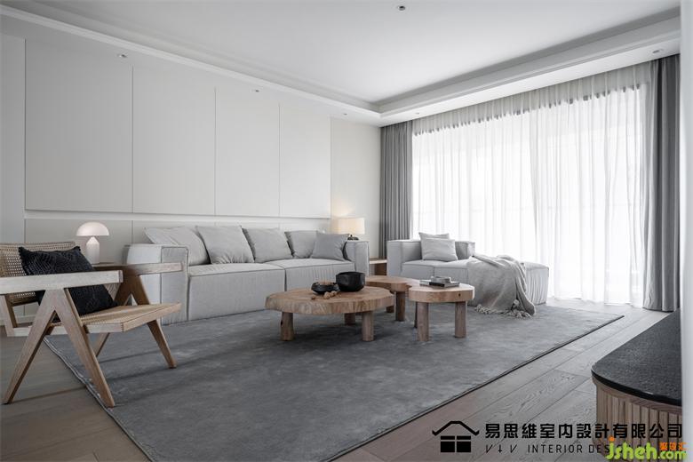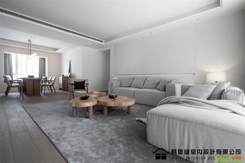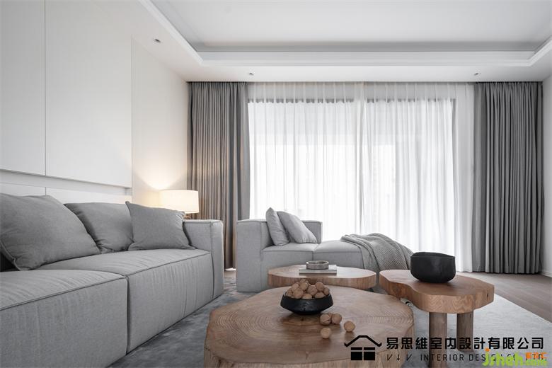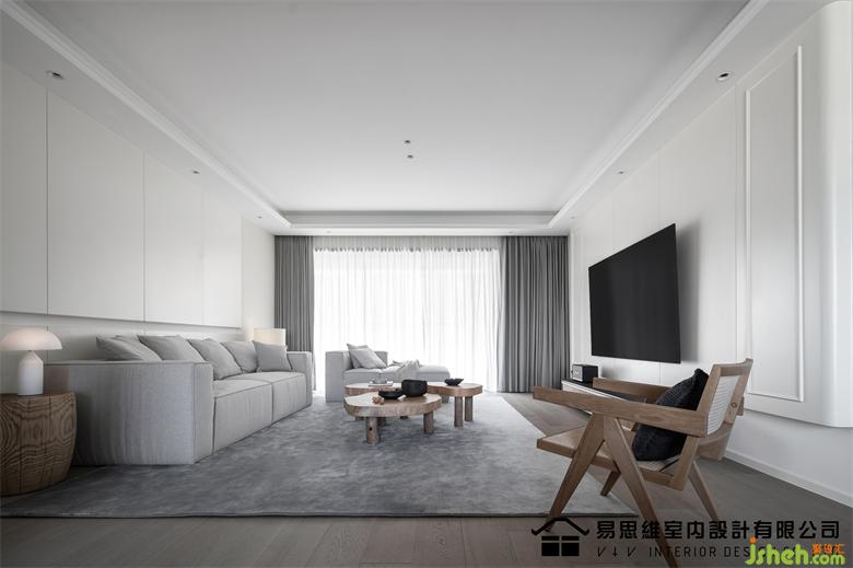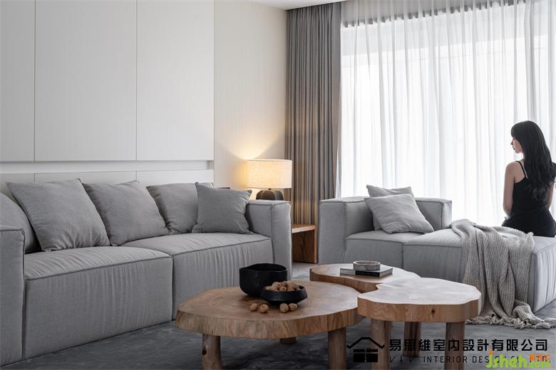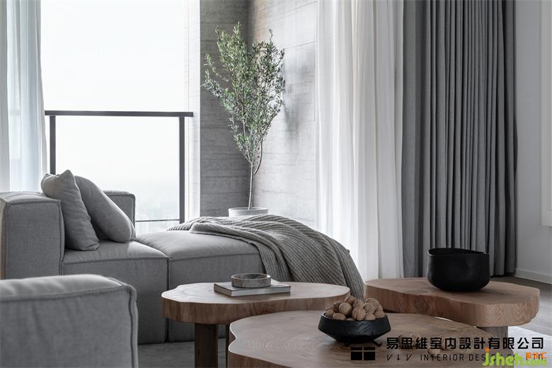 棉麻材质的沙发触感柔软、木作的家具采用欧洲白橡进行碳化处理,使得木头在保留原有纹理的前提下,浸透着古朴沉稳的高级质感,间或用不规则纹理的石材营造水的韵动感,通铺的木纹地板触手生温,色调柔和,大量天然的元素将自然的气息引入室内,家装设计在营造温馨纯朴的氛围之余,将情绪的表达融入对自然事物的诉求中,模糊了自然与空间的界限。这是一种场所精神,人文的内在诉求,诠释出朴素、安静的事物素雅、自然之美,亦是对健康生活的美好诉求。