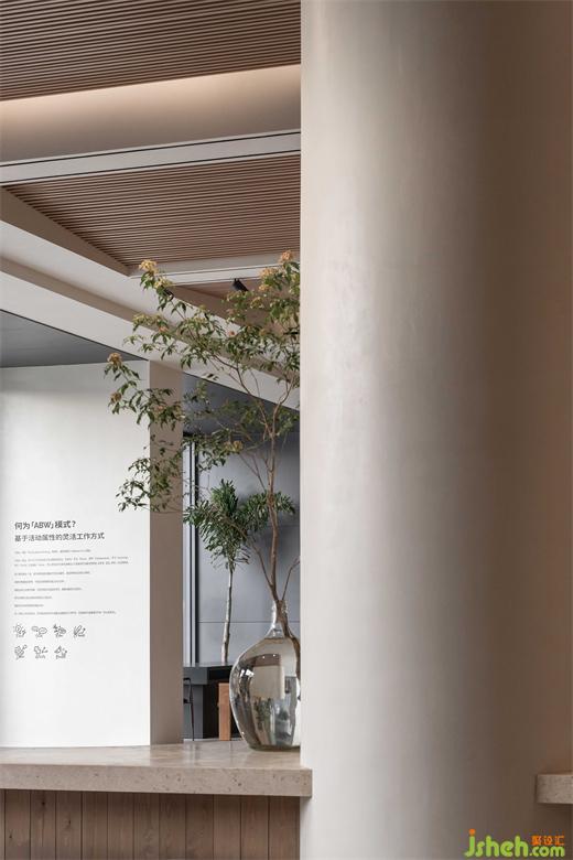 最好的关系——“亲密有间” 为了最大化地利用空间,我们运用了灵活的隔音板墙来进行间隔,可以按照不同人的需求来调度适合自己使用的面积空间,也为长期工作空间提供低噪音与私密性的环境。为更好支持多样的团队协作或商务活动,办公室设计了具有丰富的多样性并有助于内部环境的导视系统,在过道中安置了灵活的洽谈区和休息区,并提供了复合型工作设备系统以及全开放的“Cafe水吧”自助区,鼓励人与人走出来沟通和合作,形成独有的办公室“走廊文化”。