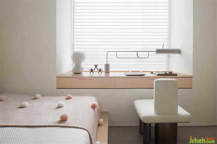 尺度内的包容性与尺度外的想象力,深圳共向设计都在窄小而狭长的主卧中被演绎出来。尺度内,用细节包裹极简,尺度外,主卧书房一体的迂回空间增加了丰富游览意趣。而空间内大面积的烟色也消融在物件中,样板房设计好似一起都被盛放、被包裹、被融合。