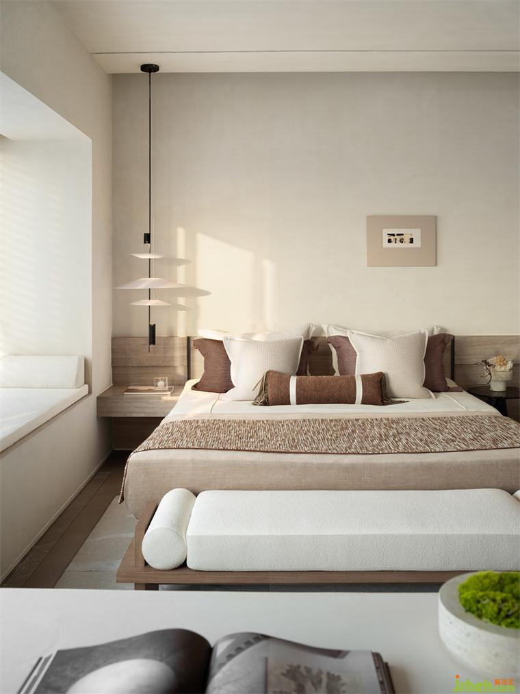主卧的通长无边景致让身心行走时都带着一股澄澈感。人处空间,忘记空间,起居坐卧,风起无痕,让时间都缓慢了下来。