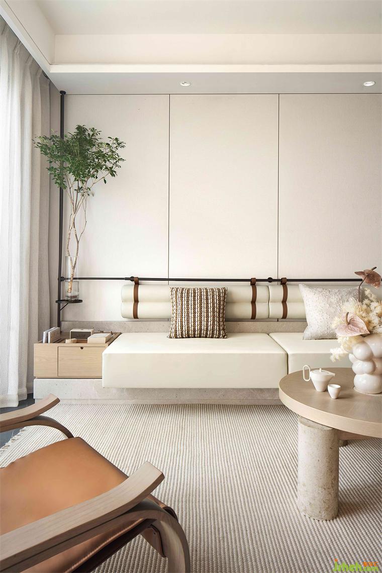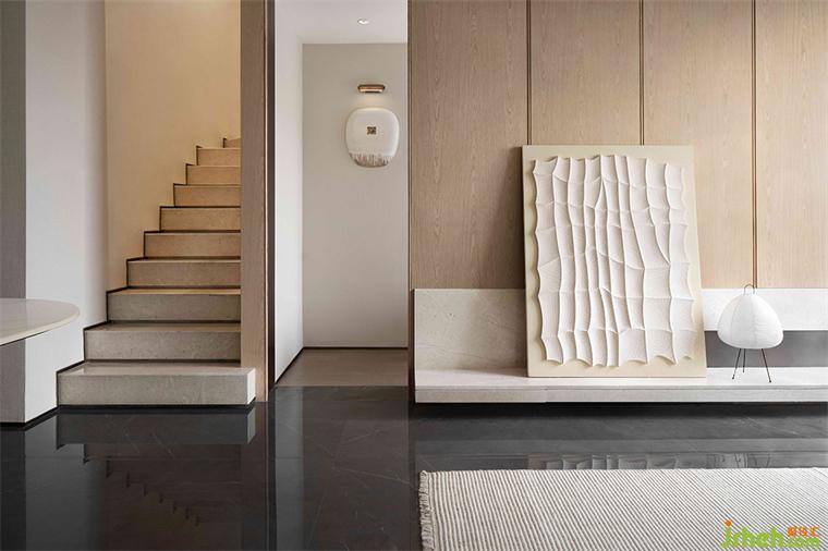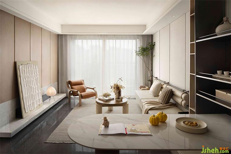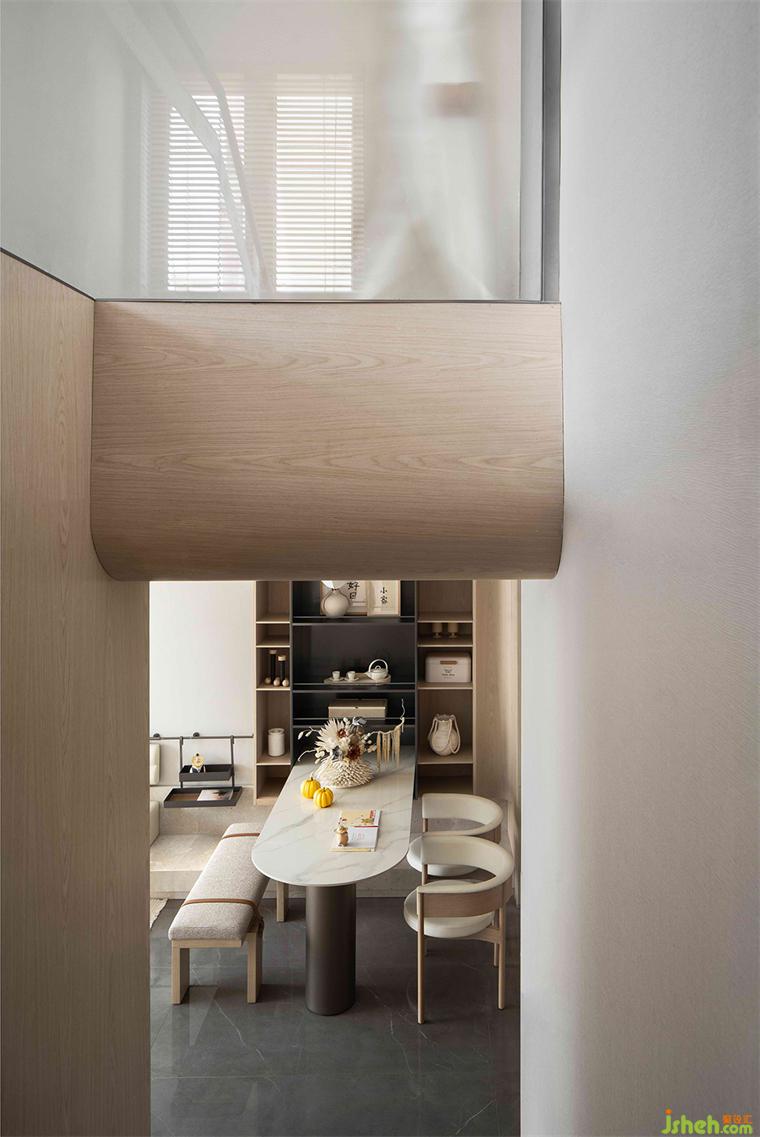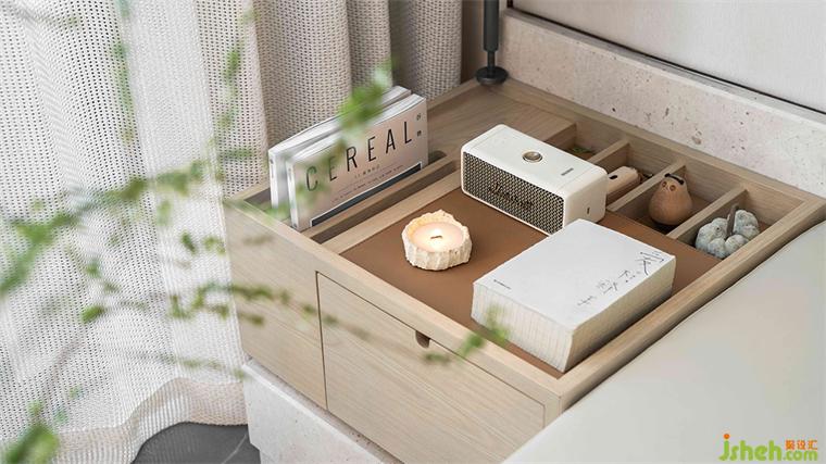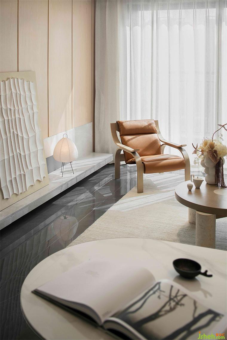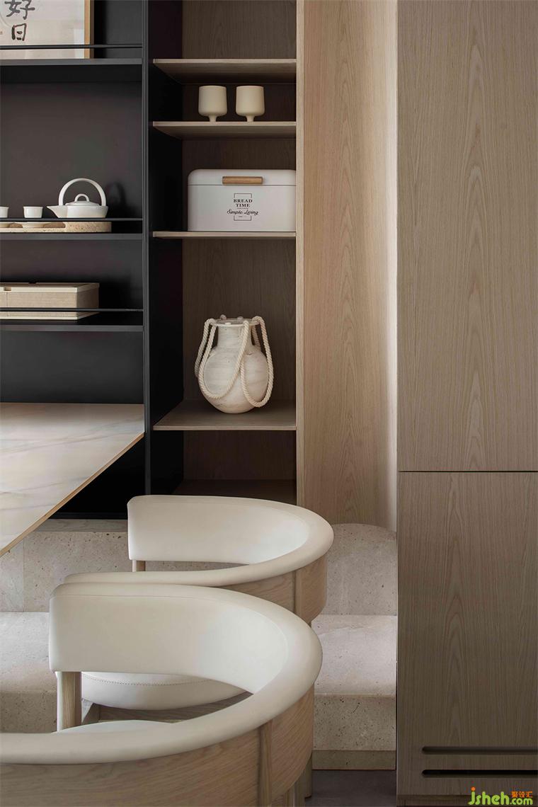 材料的不同纹理在居所中扮演着重要的角色,深圳共向设计浅黄色的木饰面和暖白色的亚麻织物。创造了一个温暖且亲密的空间氛围,光线伴着秋风可以自由的进入室内。让室内外之间形成无边界的关系,使美学和功能于此达到了某种意义上的平衡。