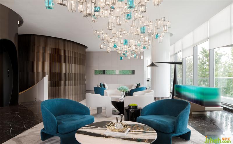 大理石、金属和皮革构成的家具饰面,软硬结合,诉说出空间流动的语言。