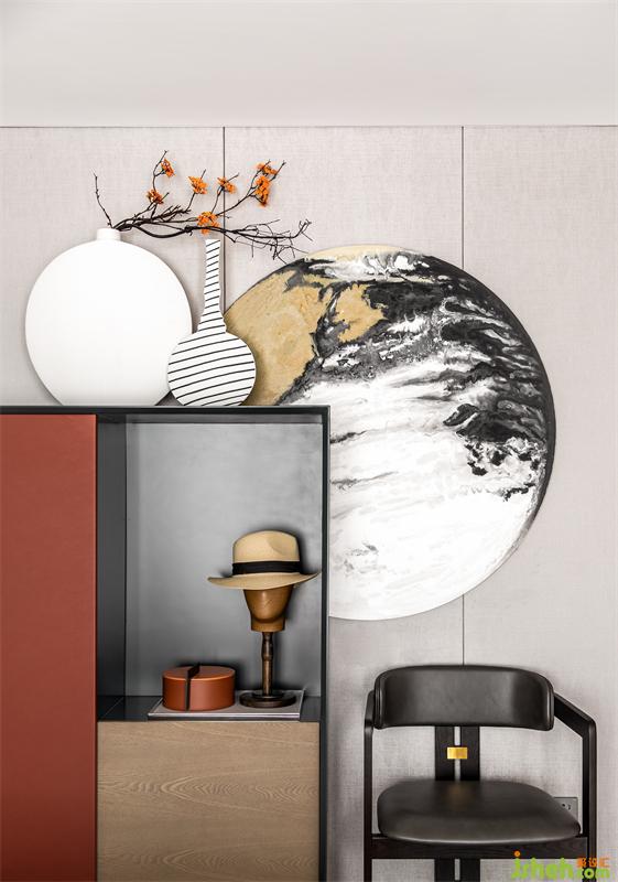 黑白搭配调性赋予空间低调奢华的魅力,彰显高级品味。含蓄克制的设计风格,样板房设计力求营造力量感与细腻并存的空间感受。在木质的醇厚温润中,触摸柔和细腻,从石材和金属的张力中,感受利落质感,艺术与空间从来相辅相成。
