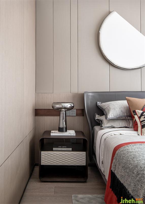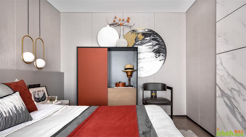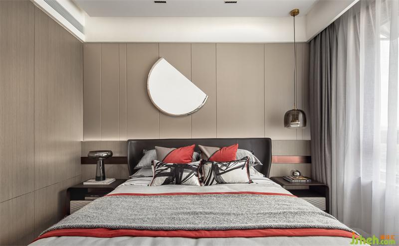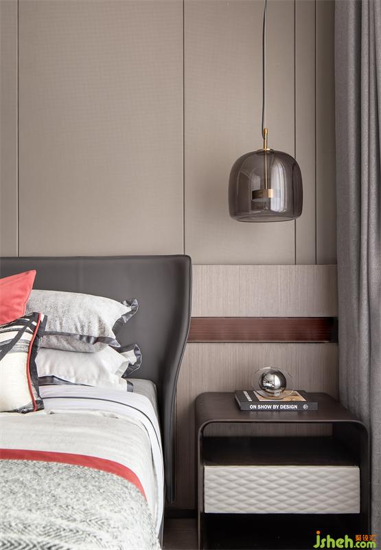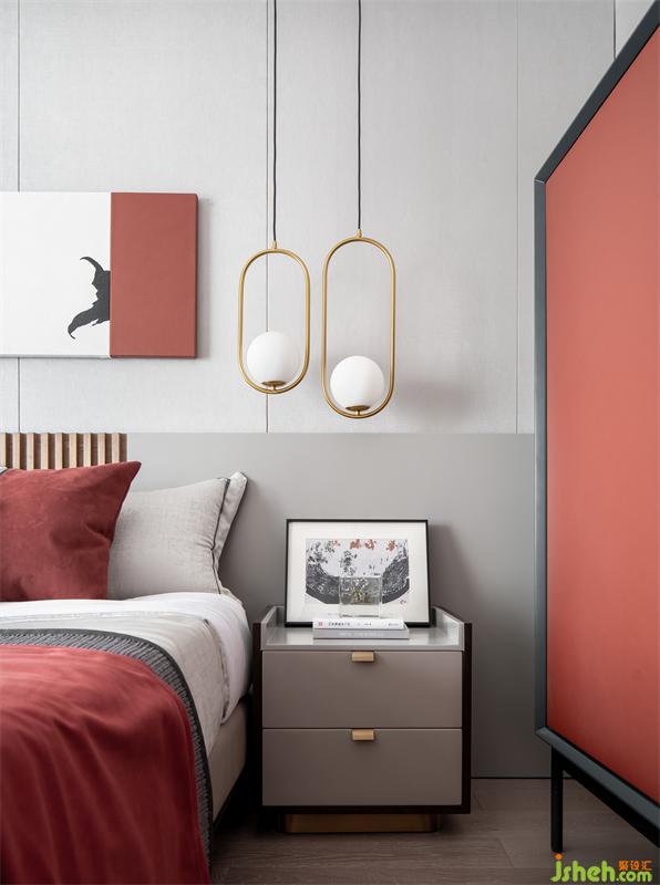 营造适合老人居住的空间氛围,样板房设计以更加稳重的浅灰色调为主色调,暗红色为跳色,营造成熟大气的空间感觉,力求呈现舒适静谧的休憩氛围。