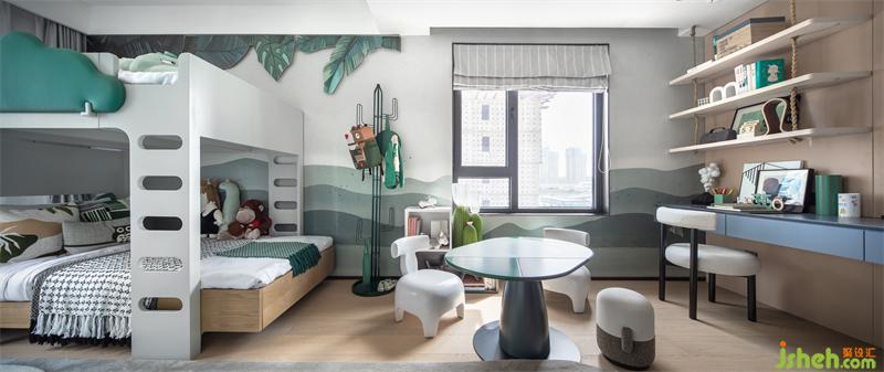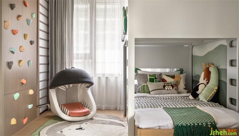 以绿色冒险为主题色调,采用不同层次色彩搭配,启蒙孩子对空间、色彩、形状的最初认识。在这里,任由他们探索未知、发现新奇、创造快乐。