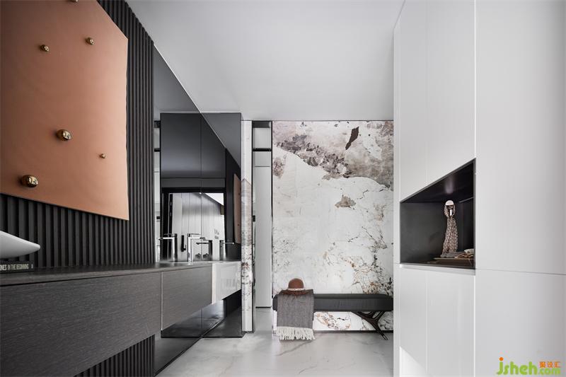 欢乐与静谧的融合是本案的生活形态,内敛沉静的高级灰,点缀轻奢潮范的暖橙色,色彩与材质的抑扬结合下所营造的氛围被全然调动并释出,仿佛拉开了一出大戏的巨幕,为每一寸空间肌肤带来神秘的叙事性。