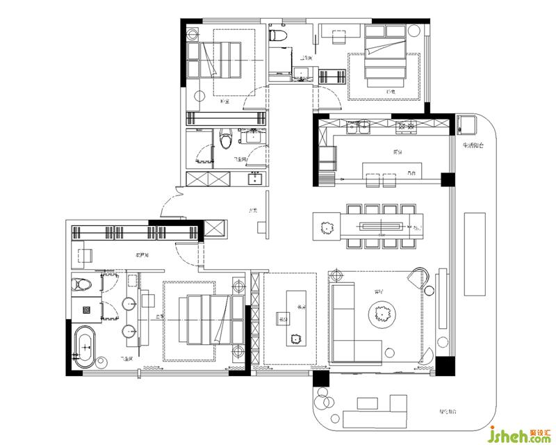 父母房摒弃繁复的缀饰,选用圆弧形家具,避免老人碰伤,样板房设计在柔和的色调中,空间的精致大到格局,小至一个墙饰、一盏灯,既有宁静的氛围,亦有岁月打磨的印迹。