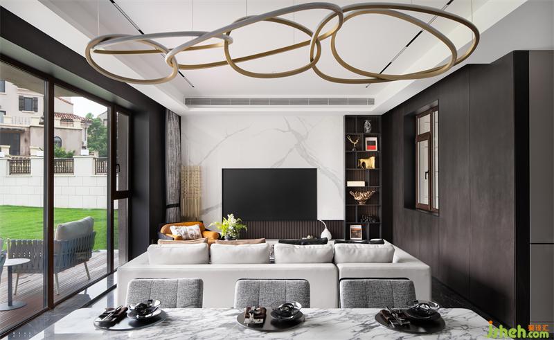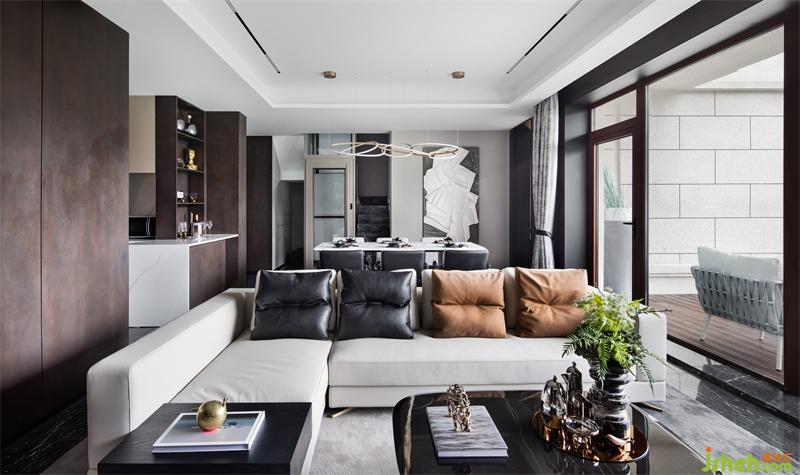 本案中,锐度以“浑河的时代印记”为灵感,在城市的繁华与归隐的闲适之间,重新定义美学概念,样板间设计将现代理性与东方雅致这似乎天生绝缘的两面,在空间变化中协奏共鸣,传递出简而不凡,和乐于心的设计哲学,于封面作品的理念之上,为高净值人群打造梦想中的乌托邦式人居生活。