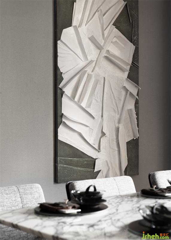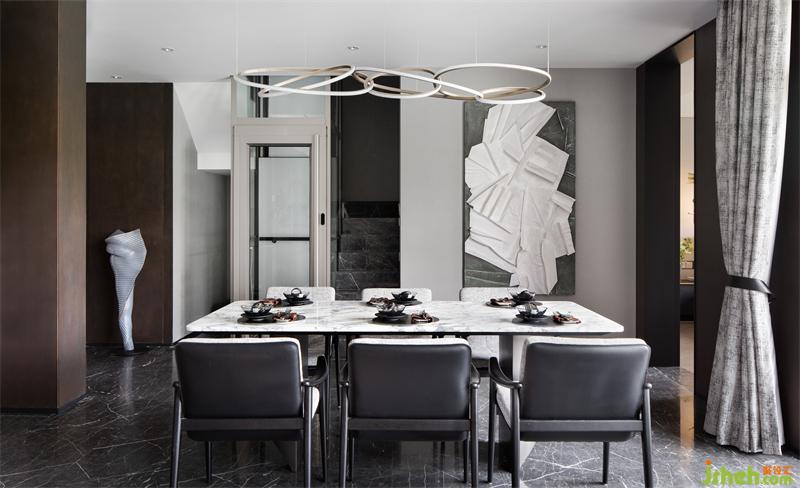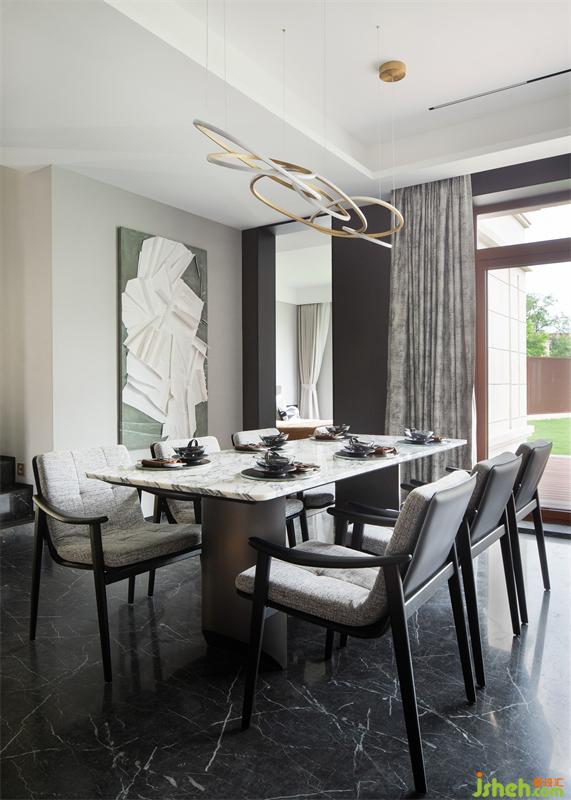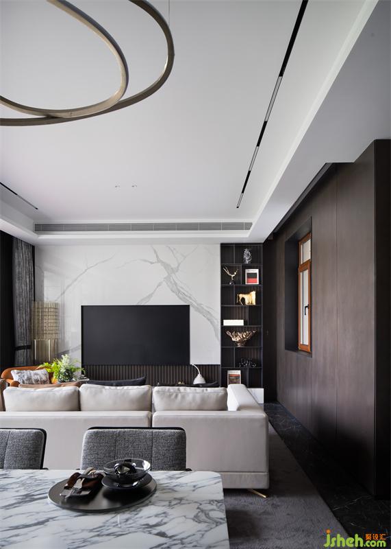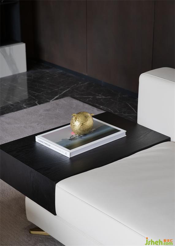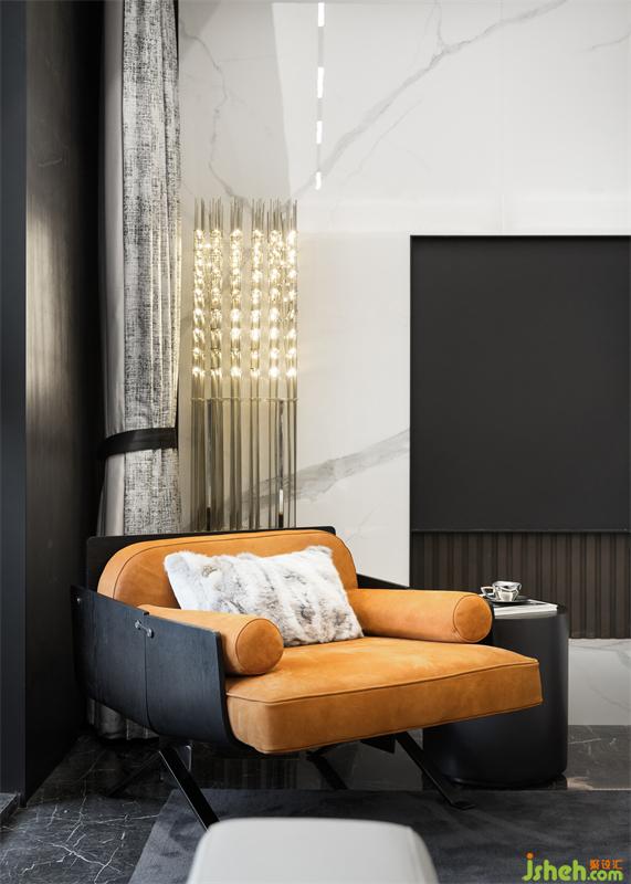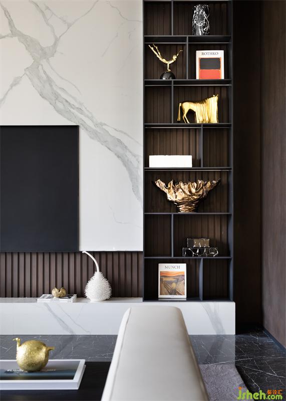 墙面使用大面积的石材和木饰面兼顾细节,以低调细腻的材质、色彩与肌理围合,让当代艺术的诗意气息流淌于其间,每种材质的独特性,无一不在诉说这空间的隐秘力量,突显它的气质。