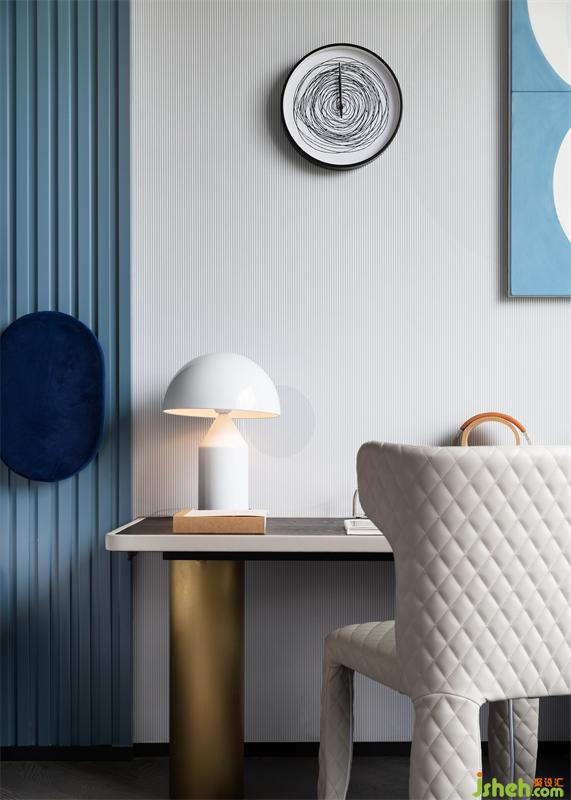 儿童房入眼是充满趣味的无尽蓝天,不同饱和度的蓝色带给人从视觉上到心理上的舒适与自由感,搭载着孩子的好奇心与活泼力,让孩童的想象力由此绽放。