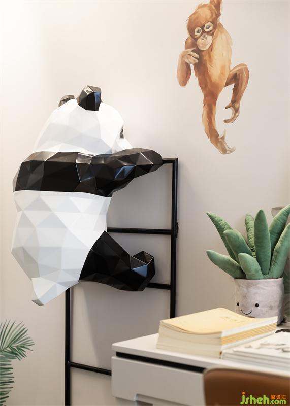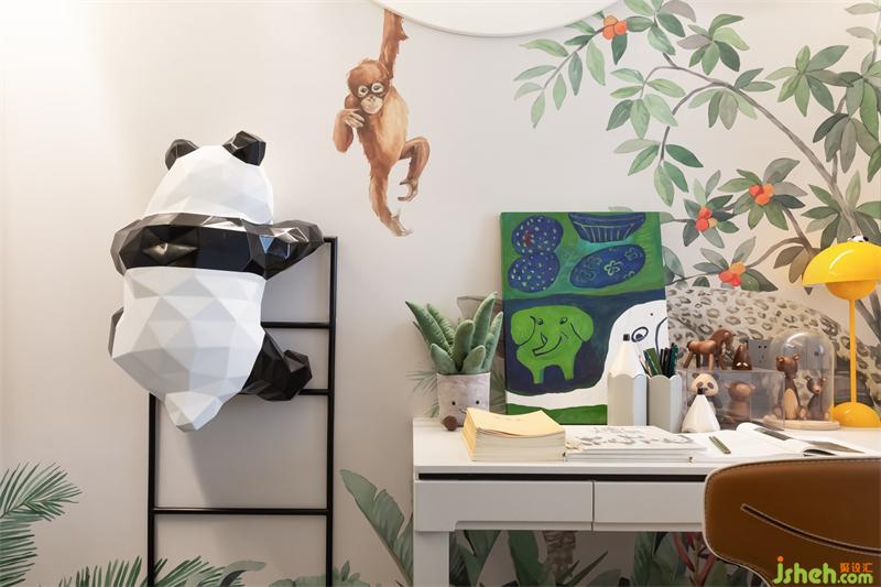 儿童房是一场丛林探险之旅,元素童趣,体块活泼,用色轻盈,温馨的小世界培养小主人的天马行空的想象力。