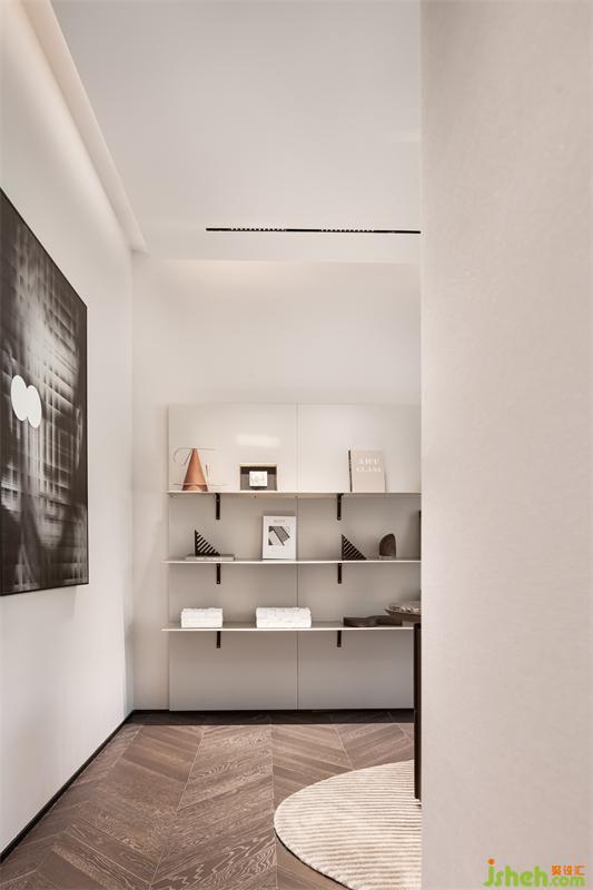 光影是空间的灵魂,材质则是空间的叙事手法。顺应光的行进方向,客卧以极简的空间构架,营造精致优雅的生活品味,在不同肌理相互交织间,别富生趣。