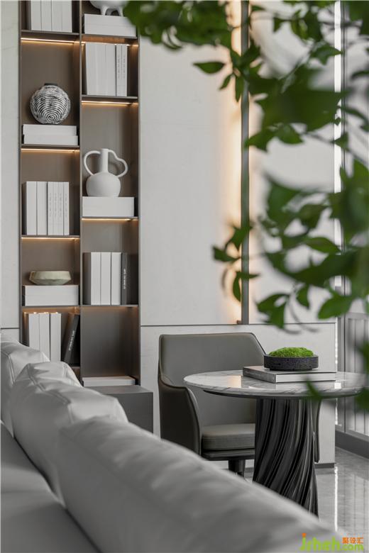光影是与空间共情的理想状态,撇去矫饰,留存真意。西安签约中心设计内外光线的自然穿透力,带来朝夕之间的光影变幻。洽谈区整个设计选用沉稳、朴实的色调搭配,在保留了传统元素的同时又摒弃了过于复杂的肌理和装饰。同时,利用格栅演绎场域的关联与独立,即保有一定的私密性,又让自然美景成为一种独立的审美对象。