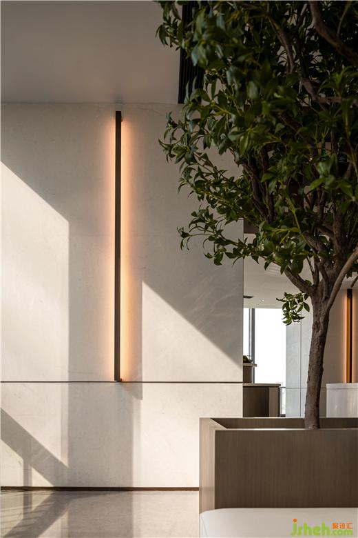 水吧区以极简的几何形式切割出体块的力量感,与整个空间形成完美呼应,大理石丰富的肌理表现与木材温润的配色,西安签约中心设计碰撞出别样的艺术气息,协调出一个有温度又精巧的空间。