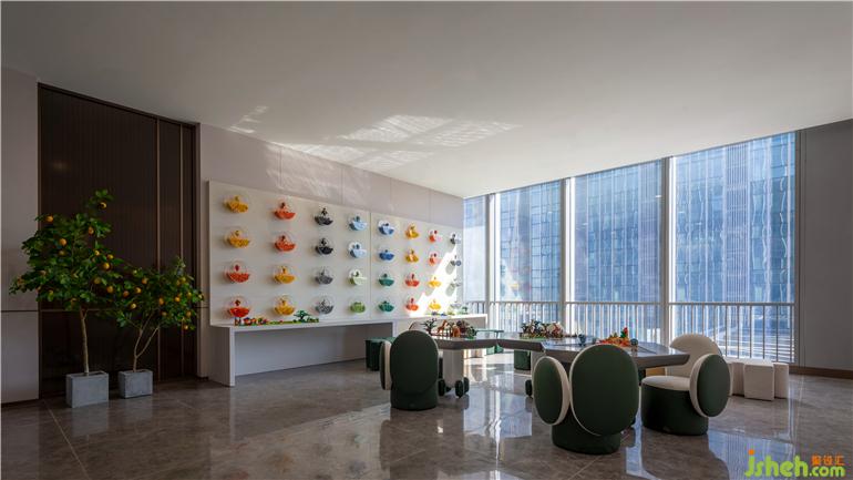 儿童区明朗的色彩勾勒出卡通化的语素,几何座椅、五彩乐高,西安签约中心设计实现艺术与趣味的融合,营造出一个梦想天地。