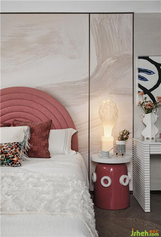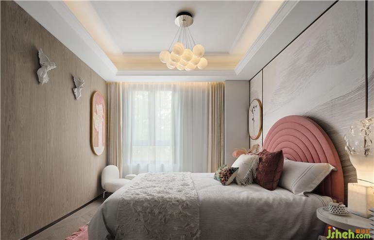 主卧以水墨色和大地色展现,灯饰、壁画、香薰碰撞出默契的陈设艺术。中铁建样板间设计落地窗引入开阔有度的视野,弧线优美的天花点缀以晶莹的水晶吊灯,于高级观感中延伸出无限绵长的生命力。老人房以日常点滴构筑生活美好,空间中一切陈设连贯统一,淡雅的色系铺洒在背景墙的纹理之上,舒适闲雅由此舒展开来。女孩房空间中梦幻的粉色代表着童真和希望,兼容时尚现代的属性及生活需求,构建出简洁明快、朝气蓬勃的空间调性。