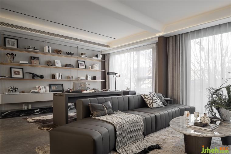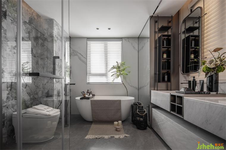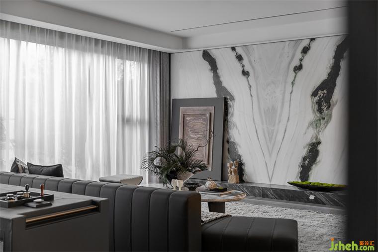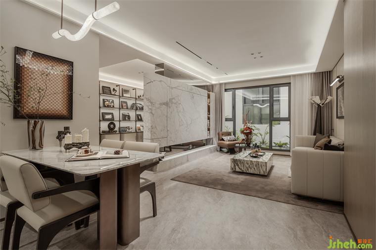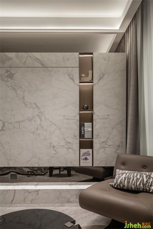 大理石的淡雅与木饰面的沉稳相碰撞,让空间的意趣与生活气息缱绻相融。设计让光影效果反衬出一种通透的快意和沉稳克制的艺术感。