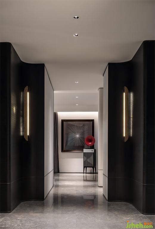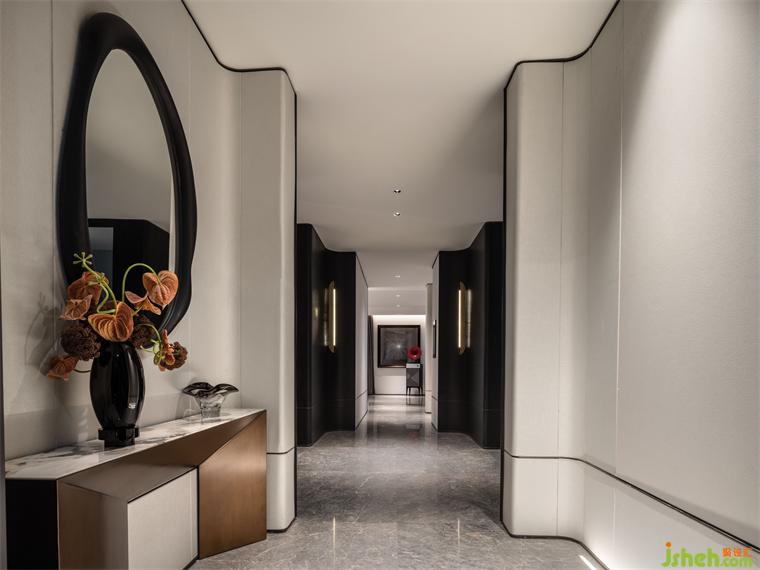 城居无界,入户玄关优雅柔长,流畅开放的空间曲调在场景中延展。样板间设计大体量的木饰面与壁布墙体曲线流畅串联,借由艺术品、家具和装饰物和谐共生,在张驰之间,感受着生活的律动。