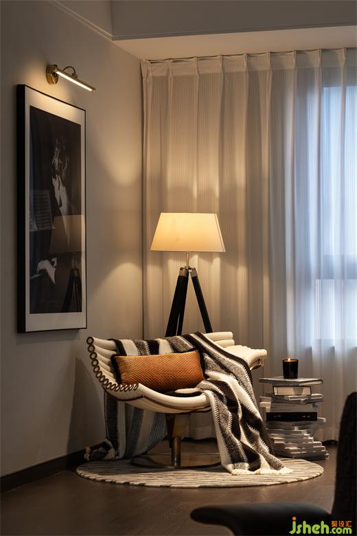 次卧简约色调与其自带的品质感相辅相成。当阳光照进,光影经由不同的角度投下的阴影,则以装饰品般通过另一种形式,塑造着家中的景象。